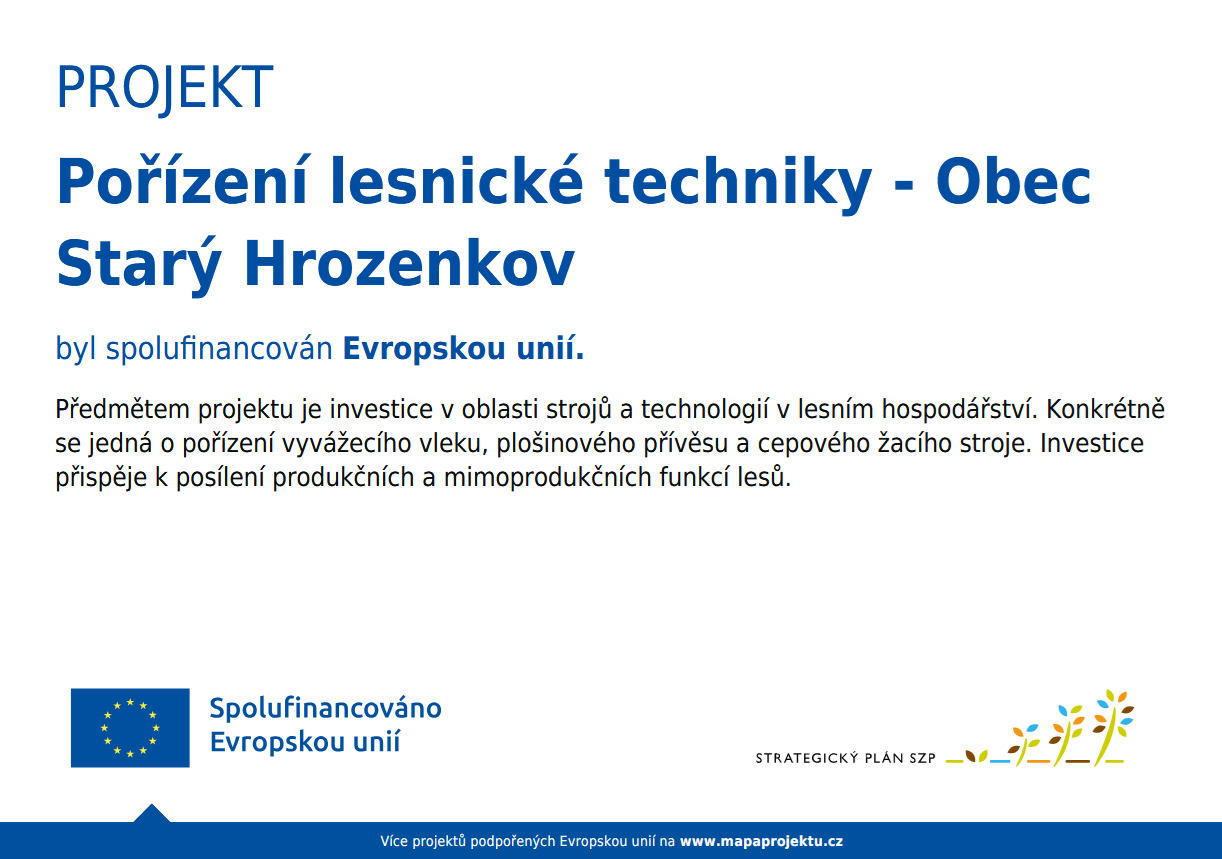 Pořízení vyvážecího vleku, plošinového přívěsu a cepového žacího stroje.